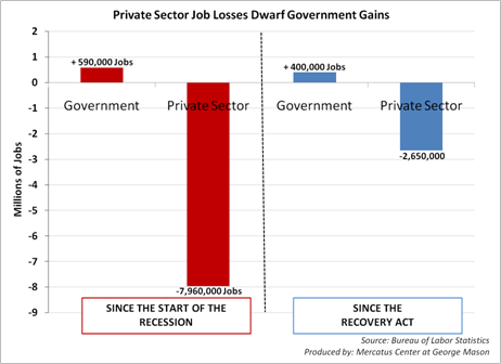 “Right now, the best thing the government can do…is help create the conditions for the private sector to start to invest in hiring again,” [Secretary of the Treasury Timothy Geithner] said. “Now, we’ve seen six months of positive job growth by the private sector. That’s pretty good,” Geithner said. “Pretty good this early in a recession.“