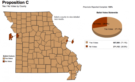 UPDATE: Opponents of Proposition C (i.e., Obamacare supporters) outspent supporters 4-to-1. (Via the Corner.)