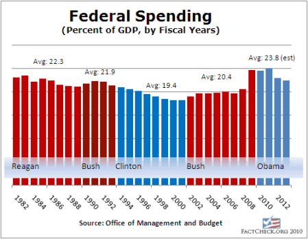 The administration’s own estimates project spending next year that is higher as a percentage of the economy than in any year since the end of World War II. The average projected by Obama’s budget officials is significantly higher than the average under Reagan or Bush (father or son).